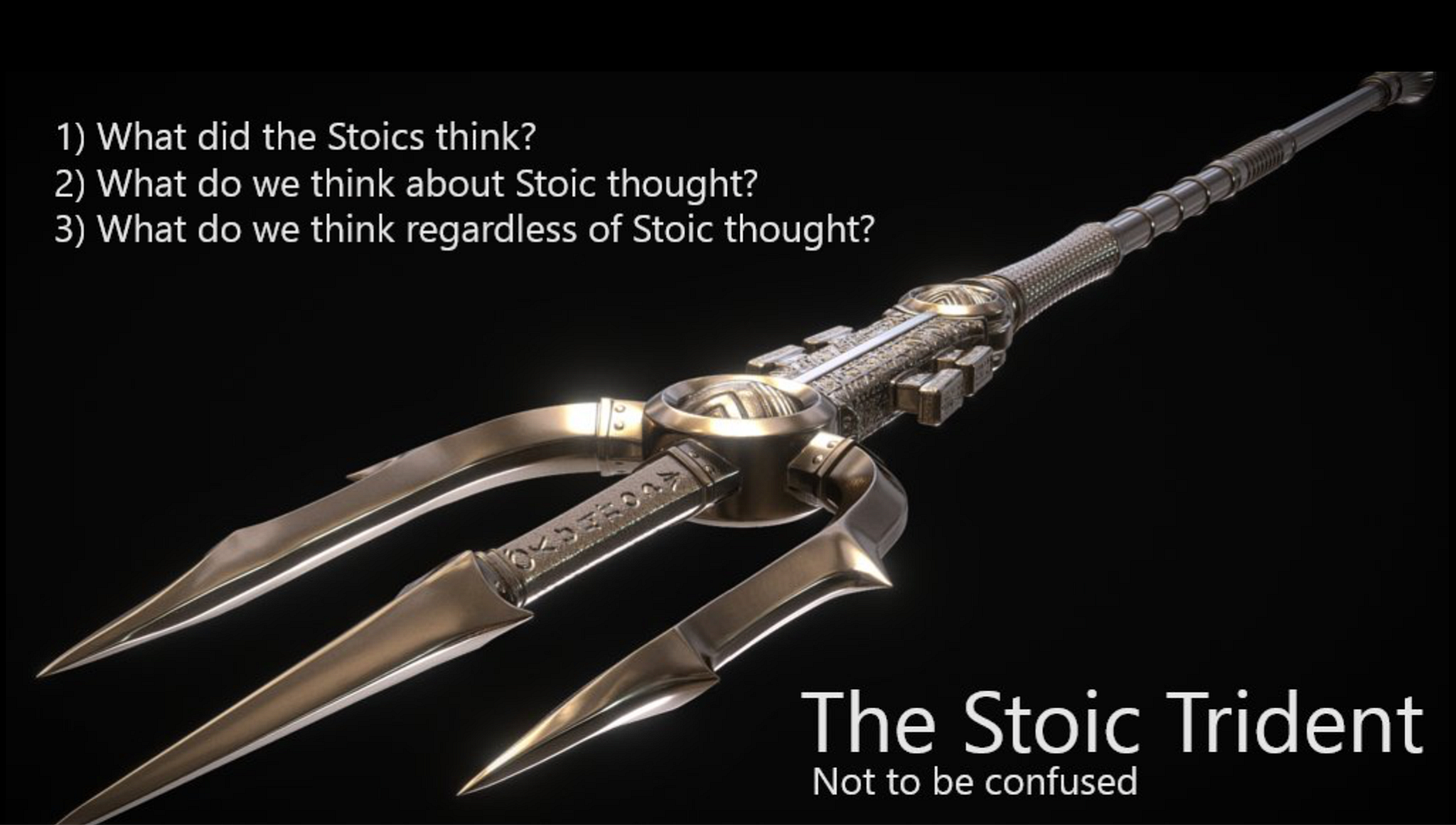 James Daltry of Living Stoicism proposed what he calls the ‘Stoic Trident’. The trident states that there are 3 questions, often conflated, that must be kept separate.